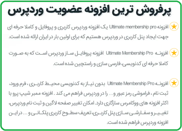 در ادامه شما را با ویژگی ها و امکانات بیشتر افزونه Ultimate membership pro آشنا می کنیم.